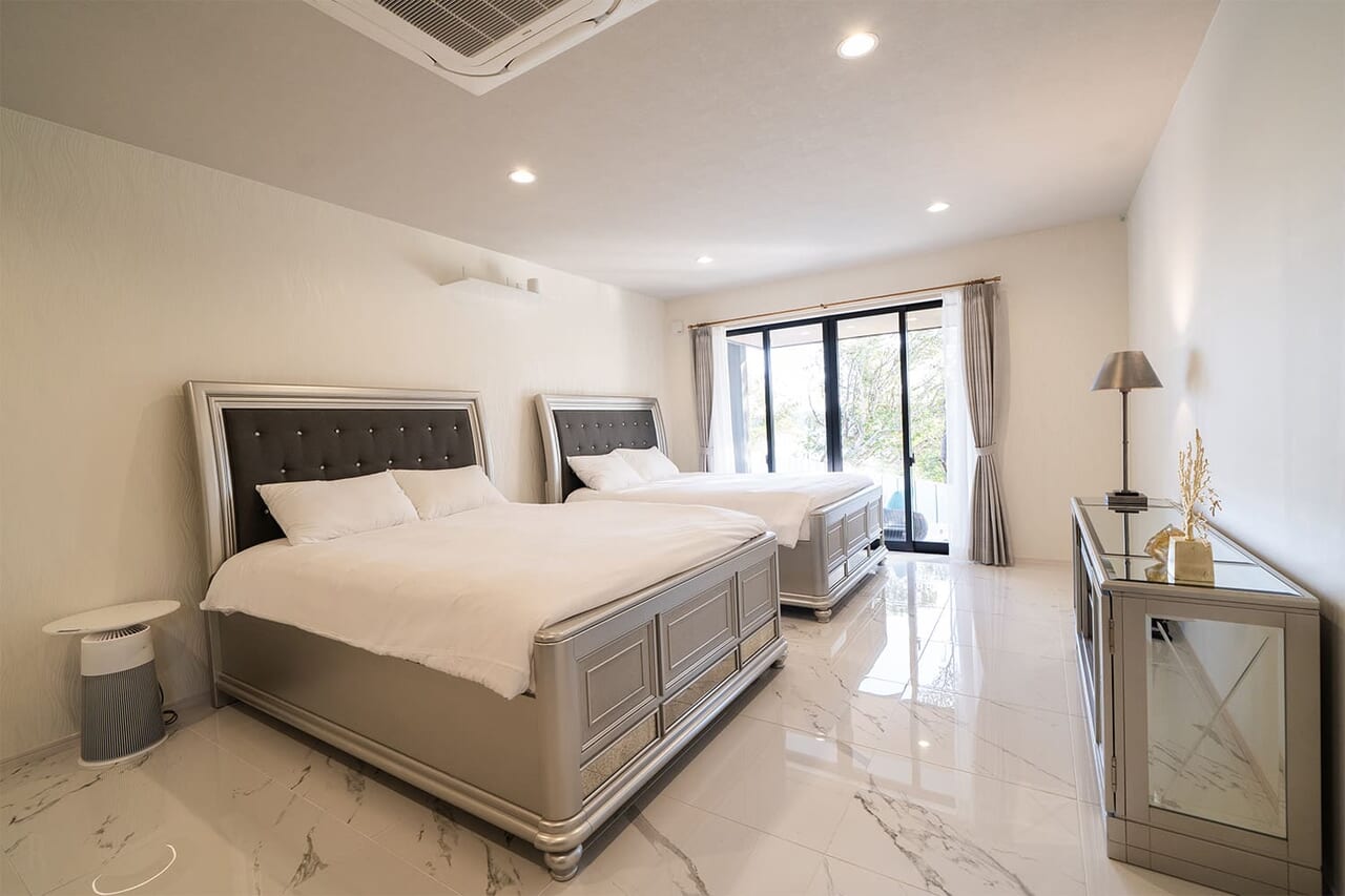 開放感のあるダイニング空間と2つの独立した寝室、プライベートガーデン(プール&サウナ)を備えた広々空間の1棟貸しヴィラです。
